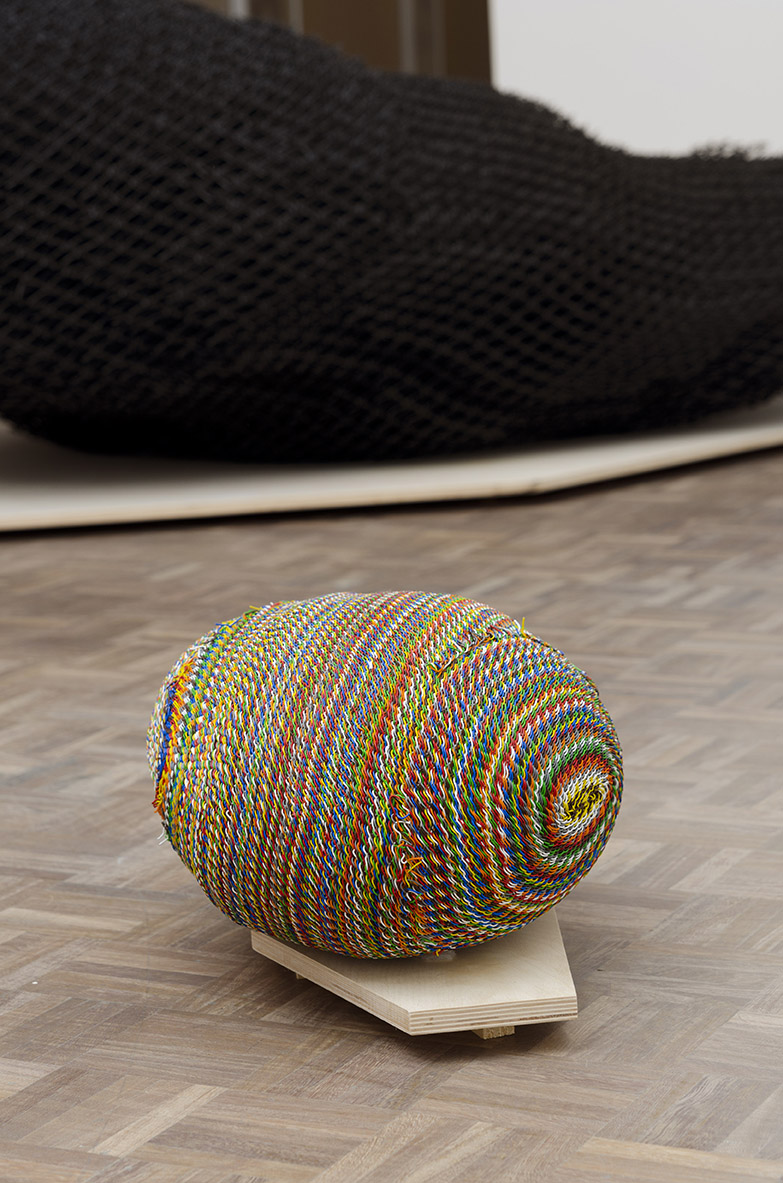 Orbit, 2012, polypropylene mesh, cable ties, PVC-insulated copper wire, stone, dimensions variable