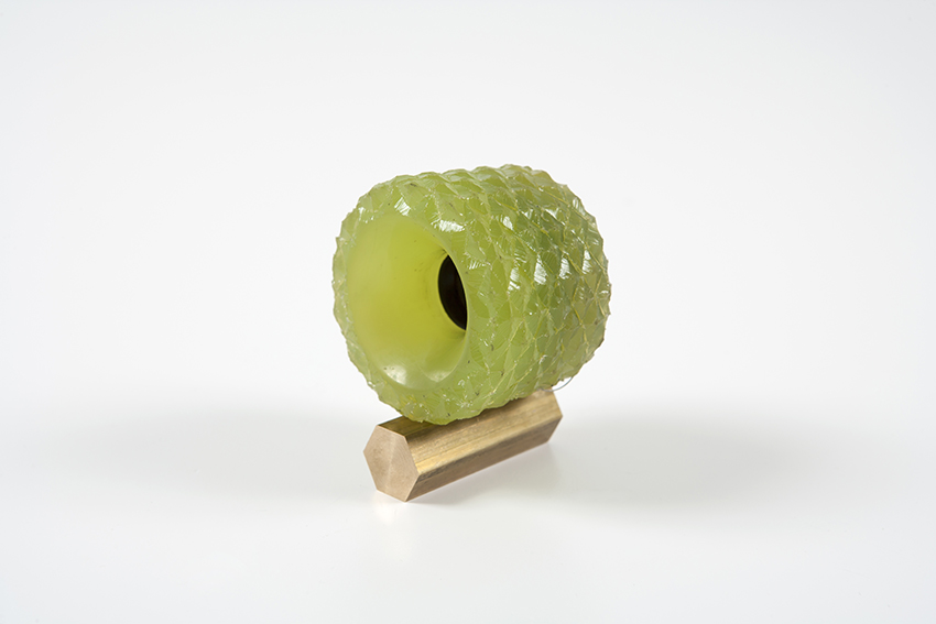 Season , 2013, skateboard wheel, brass, 6.6 x 4.6cm