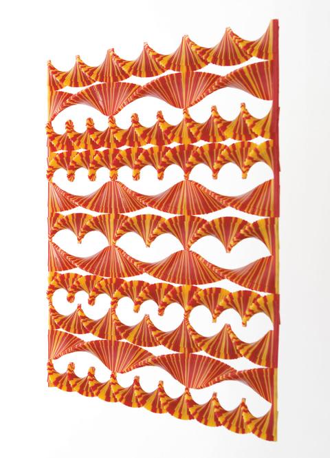 This series of works was produced in the same way I made Sieve in 2005. Layers of Tyvek in cyan, magenta, yellow and white were layered and holes were carefully incised in successive layers allowing precisely determined quantities of each colour to be visible. In this way I was able to create the illusion of simple forms corresponding to ideal slopes and transitions, something at the heart of any surfer’s or skateboarder’s search for the perfect ride.